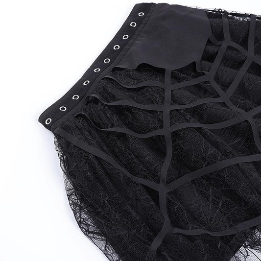 Jupe Gothique Taille Haute Noire avec Bretelles