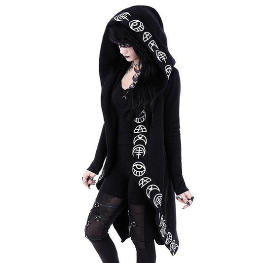 Manteau gothique avec un ourlet asymétrique et des manches brodées