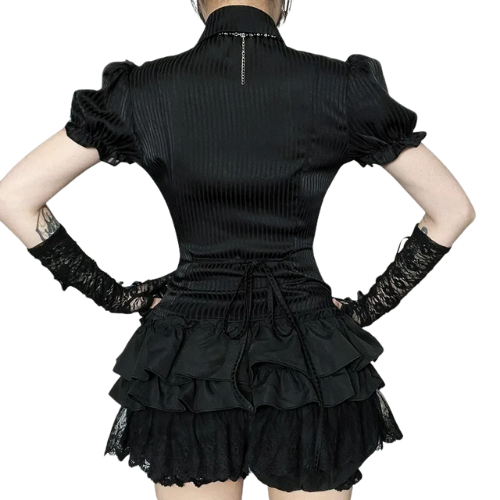 Chemise noir à manches courtes et boutons, style gothique et kawaii