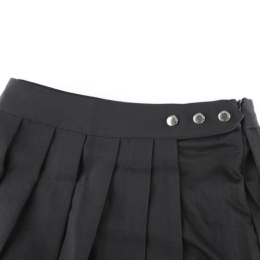 Jupe Gothique Taille Haute Noire avec Bretelles