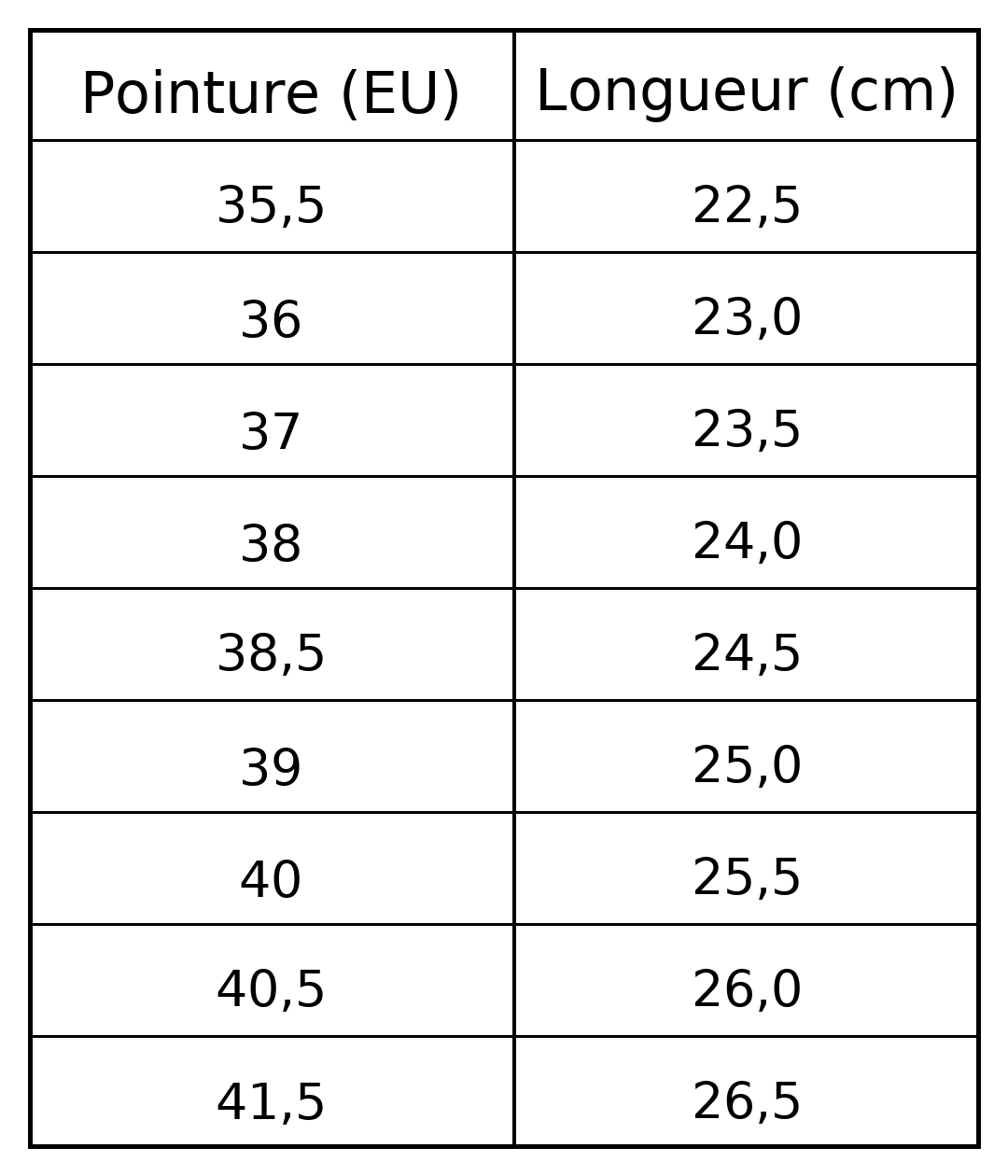 - Semelle : caoutchouc antidérapant et plateforme épaisse