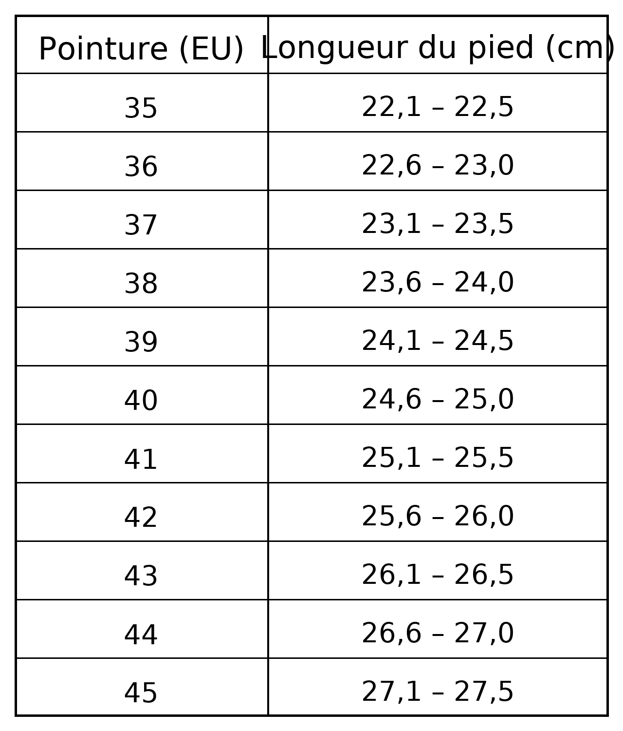 - Semelle intérieure : rembourrée pour le confort et le maintien