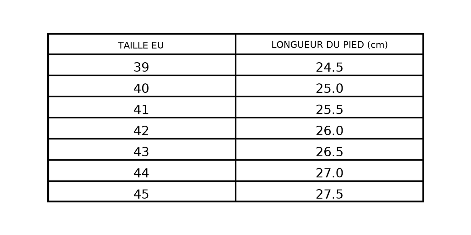 - Semelle : caoutchouc épais et cranté, antidérapant