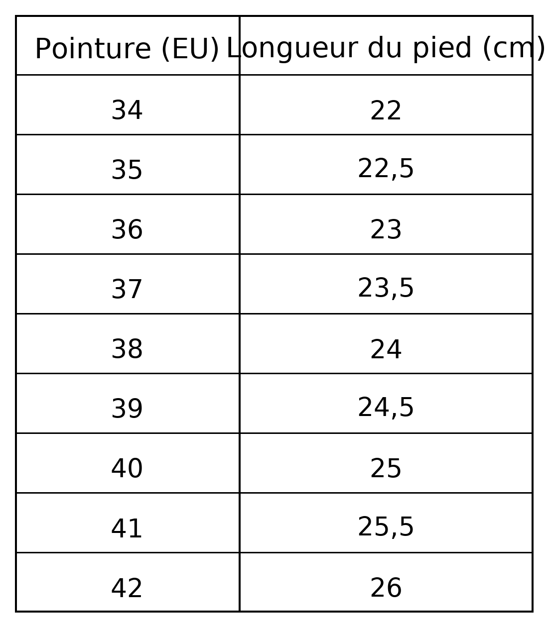 Guide des tailles