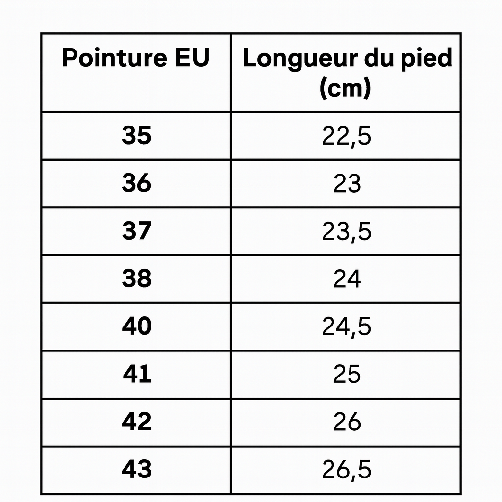 - Semelle intérieure : légèrement rembourrée pour plus de confort