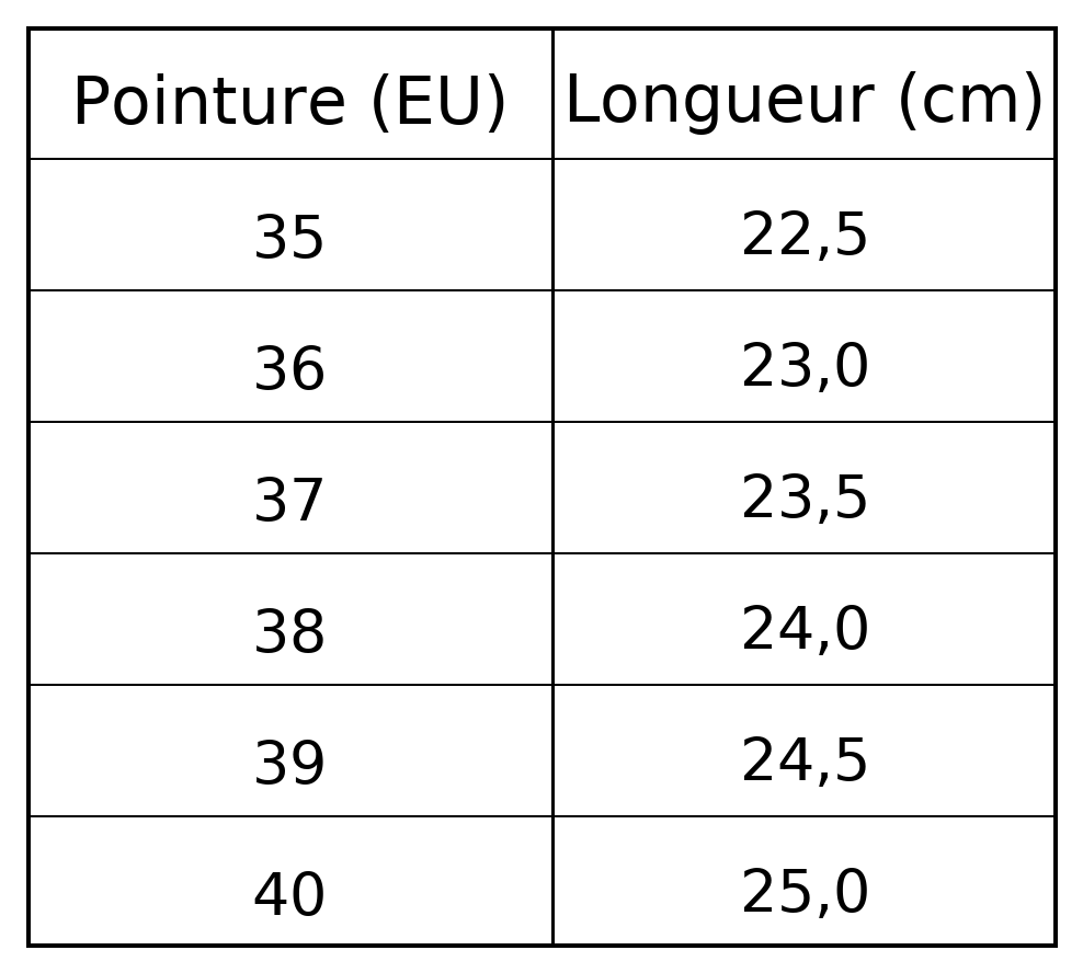 - Épaisseur de la semelle : ~5 cm