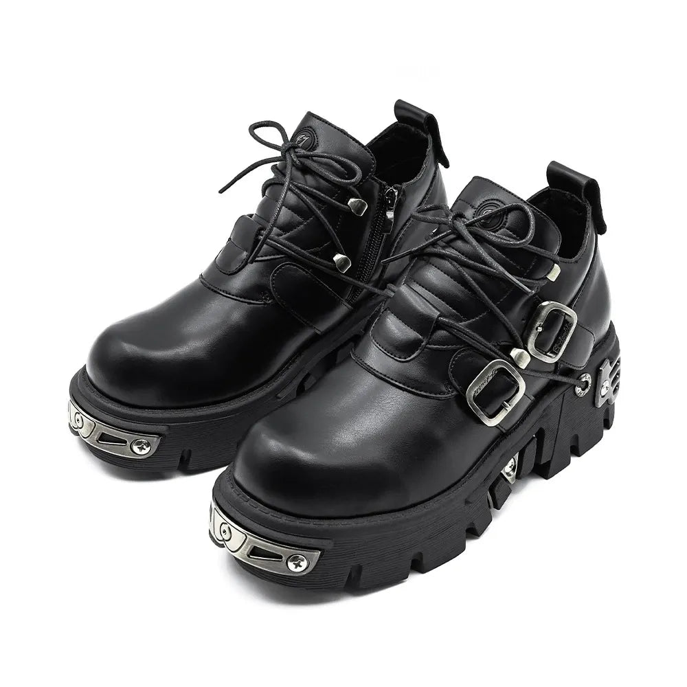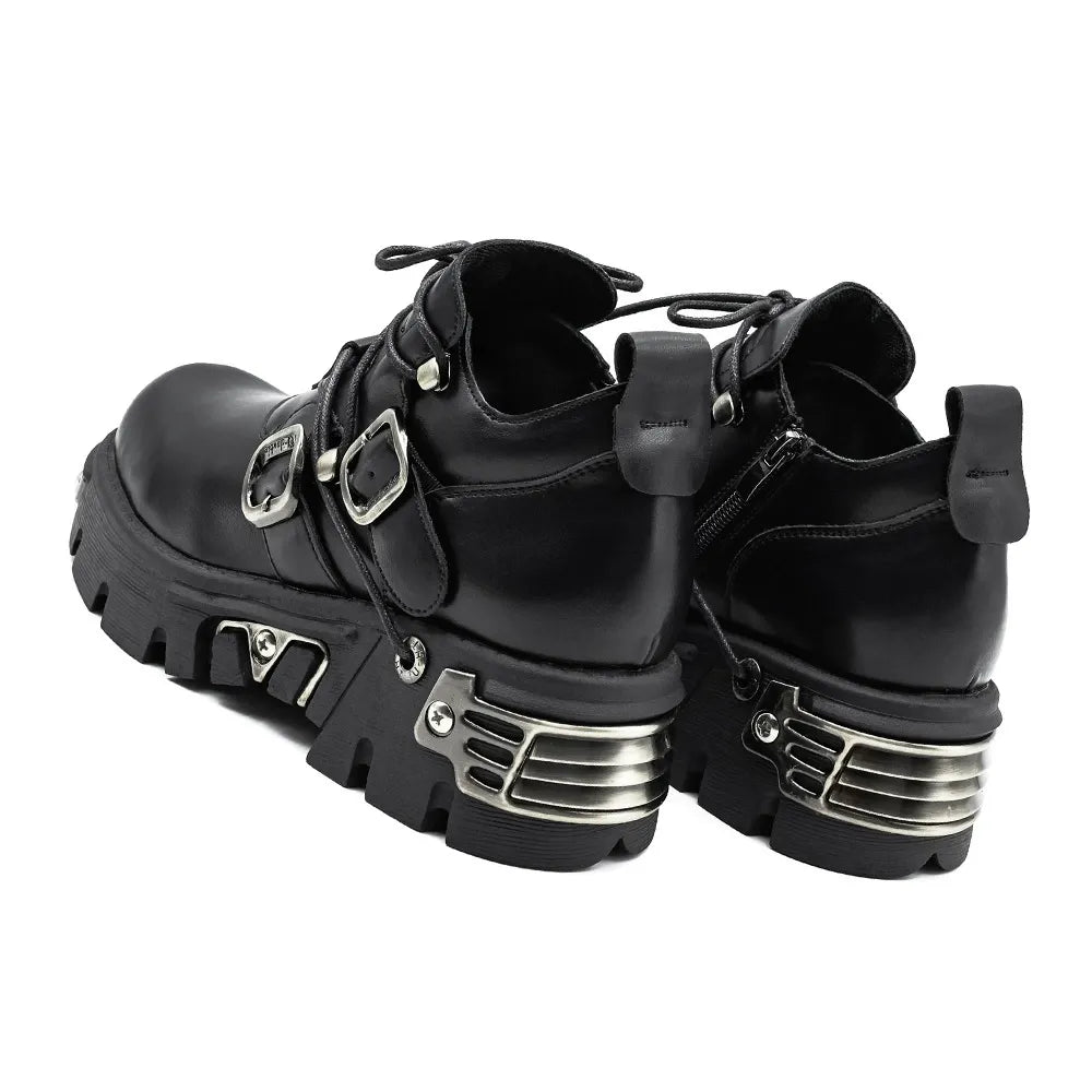 Chaussures à plateforme noires avec boucles et plaques métalliques