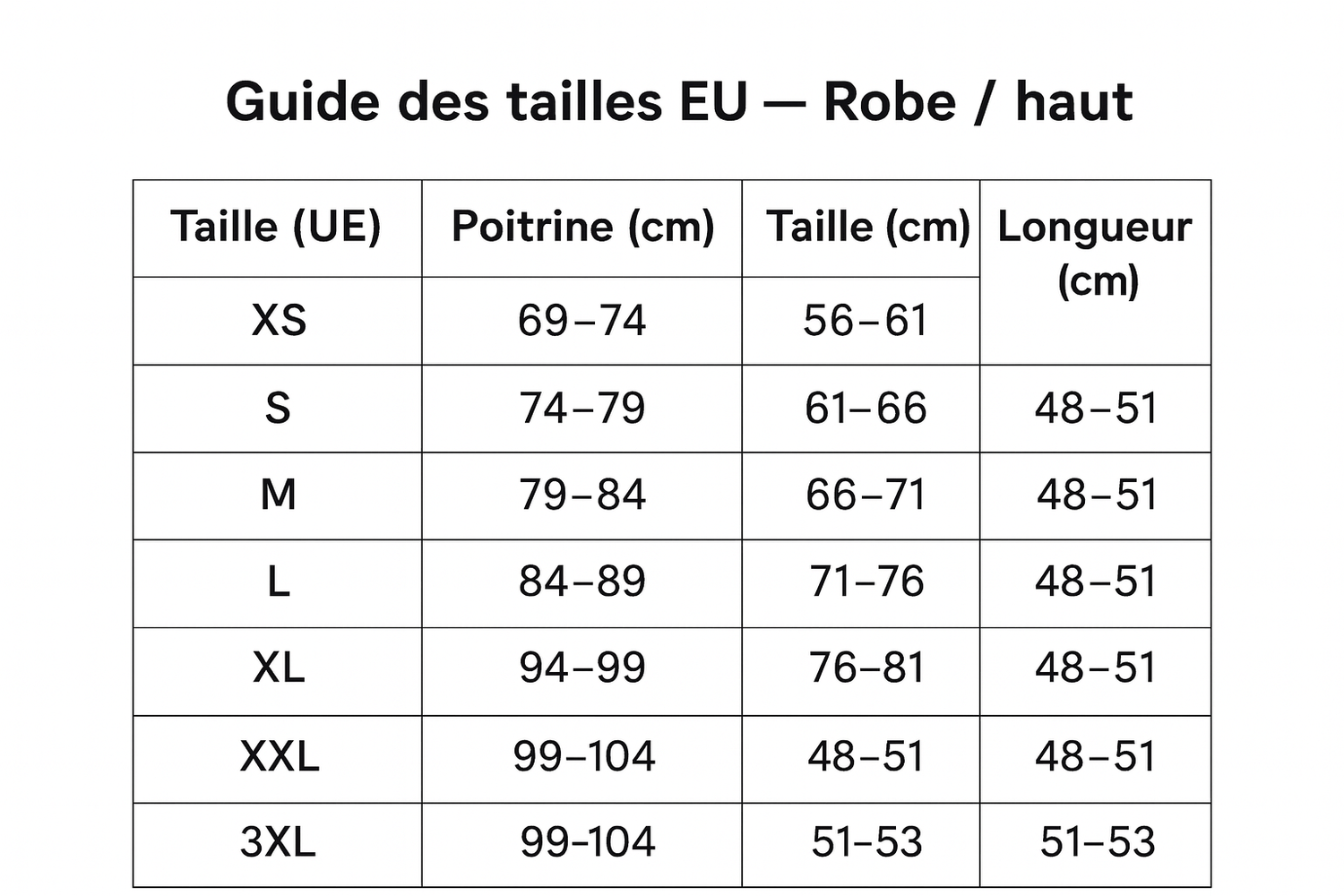Guide des tailles
