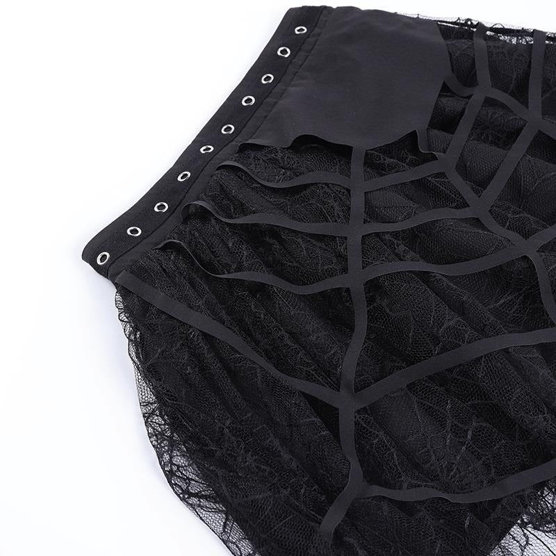 - Décoration : Superposition de bandes croisées, ourlet irrégulier effet déchiré, œillets métalliques à la taille