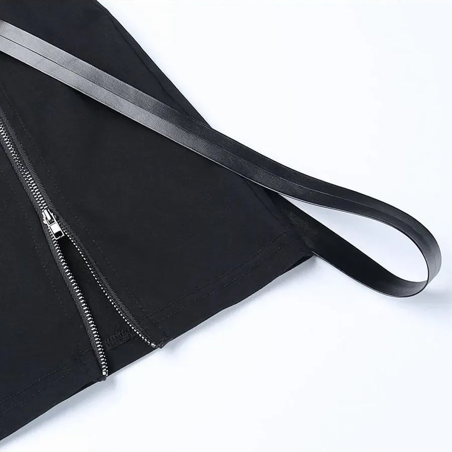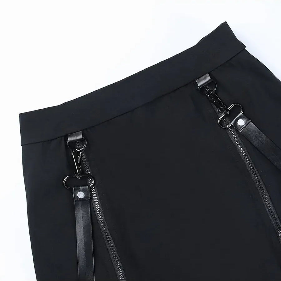 Jupe Gothique Taille Haute Noire avec Bretelles