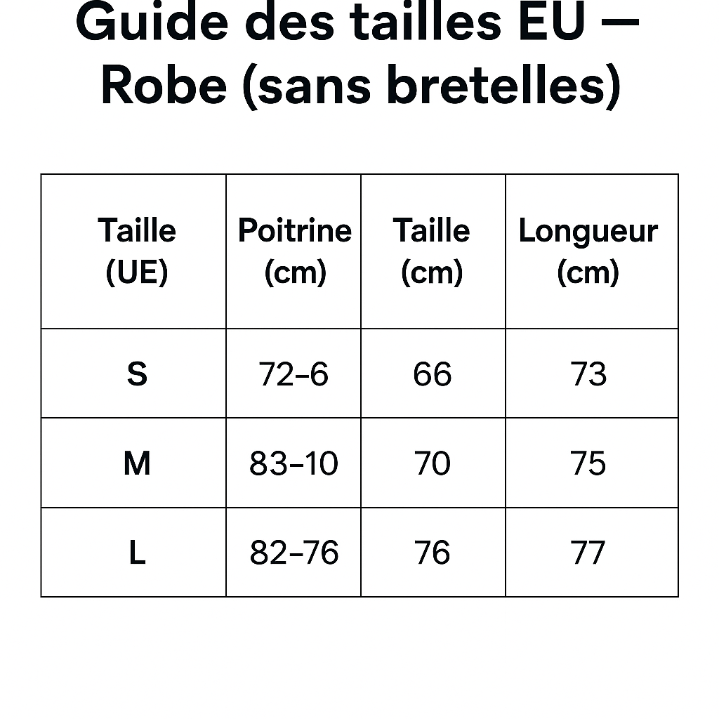 - Silhouette : ajustée au buste, évasée en bas avec une coupe courte à l’avant et plus longue sur les côtés