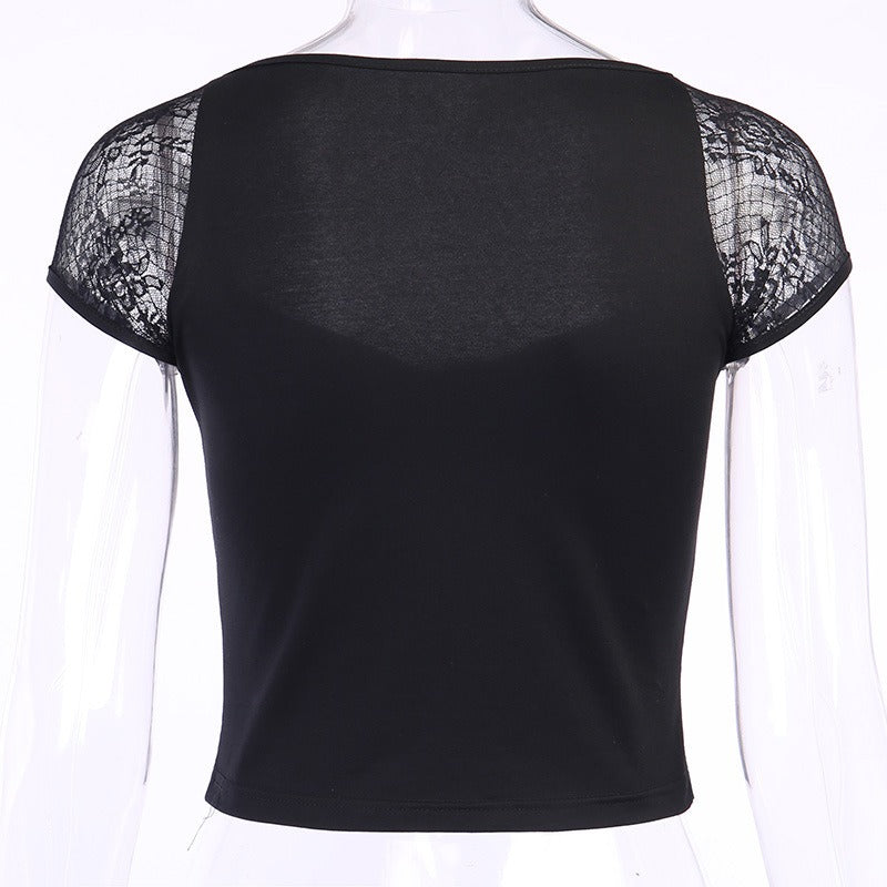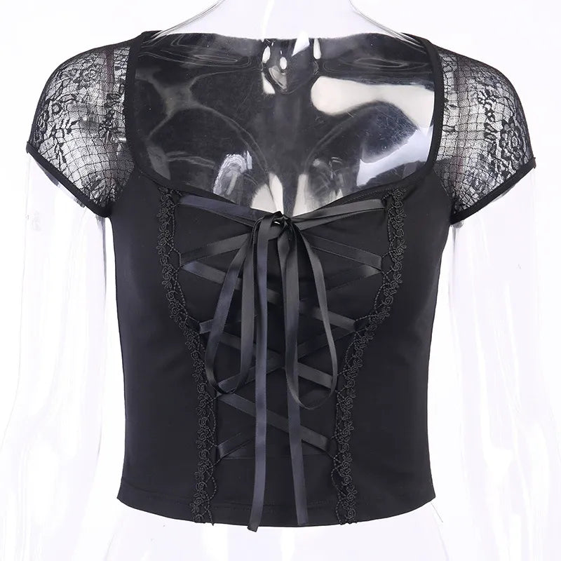 - Genre : Femme, lacets larges à l’avant du t-shirt, manches courtes