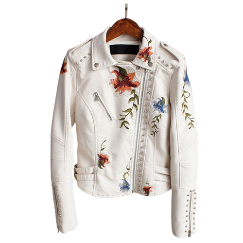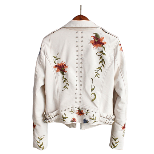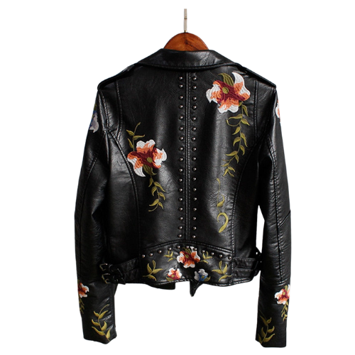 Veste en cuir biker motif floral dans un style alternatif